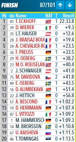 У Херманн тоже промах. Она седьмая, но уже откатившуюся на восьмую позицию Алимбекову опережает на 3 секунды.