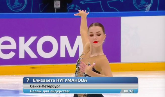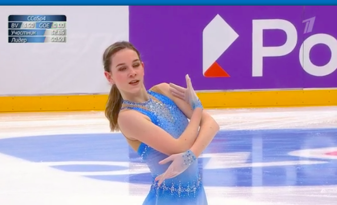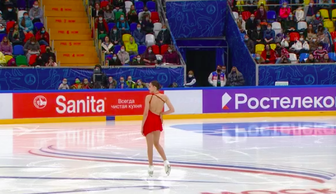 На льду — ученица Тутберидзе Дарья Усачева, которая даже без элементов ультра-си набирает огромные баллы, сравнимые с оценками Александрой Трусовой, исполняющей четверные прыжки. Дело в том, что Усачева обладает высоченными оценками за компоненты и получает отличные бонусы по GOE — ее прокаты очень красивы, а прыжки выглядят безупречно. В короткой программе фигуристка катается под композицию из мюзикла «Мулен Руж» «One Day I'll Fly Away».