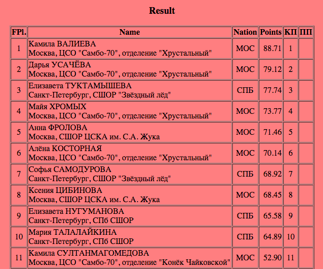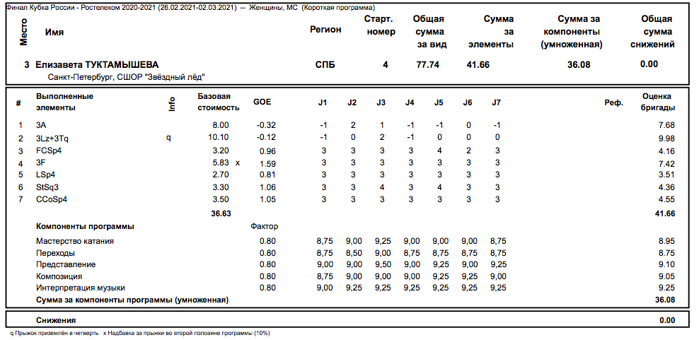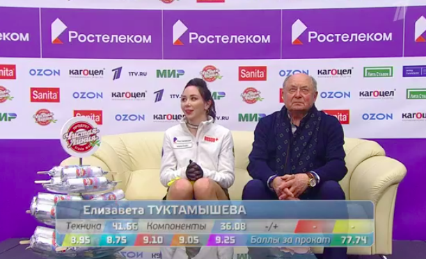 За свой прокат Туктамышева получает 77,74 балла и становится промежуточным лидером таблицы!