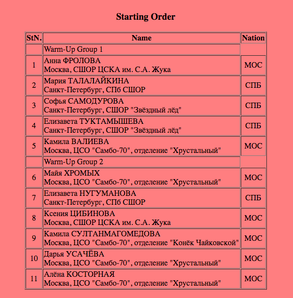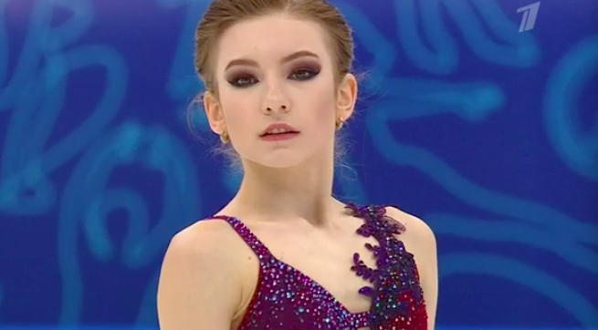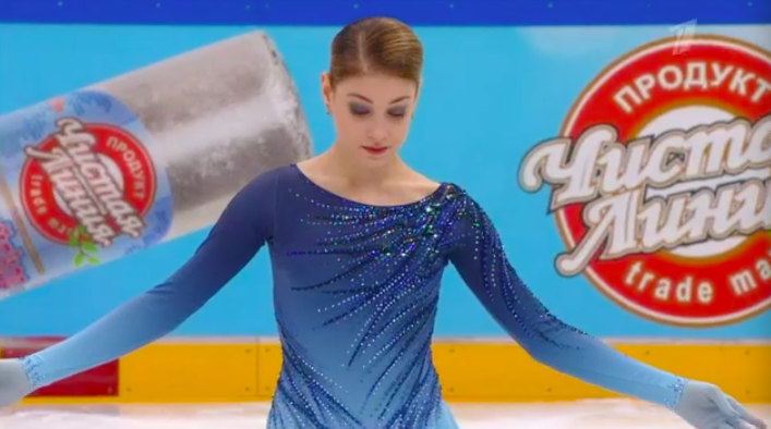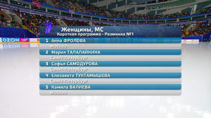 Открывает соревнования женщин Анна Фролова, которая катается под саундтрек к фильму «Матильда» — возвышенный и драматичный.