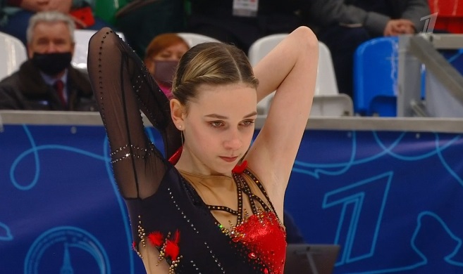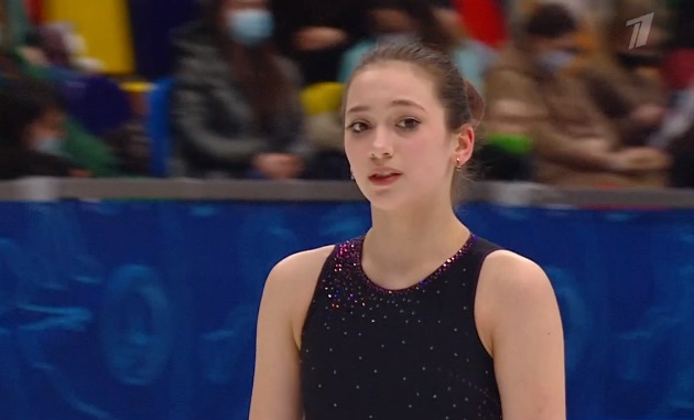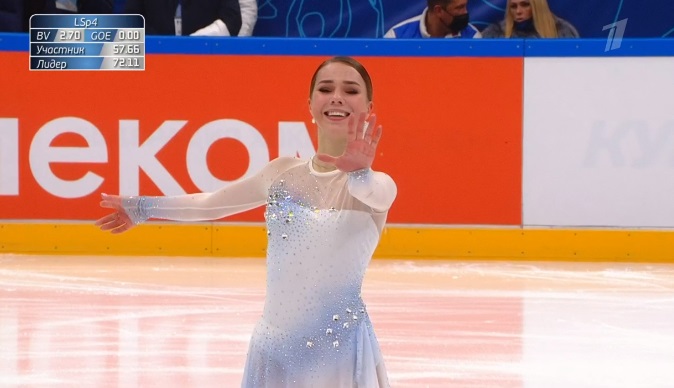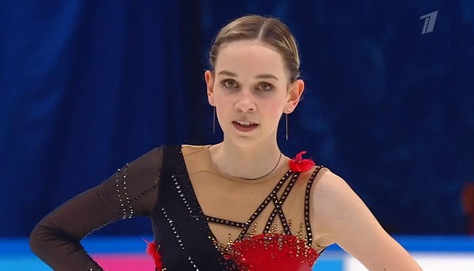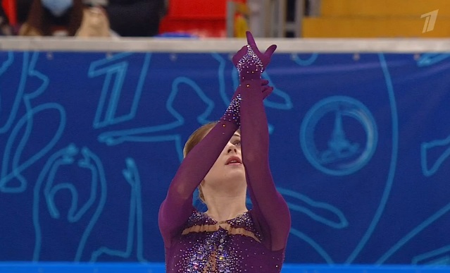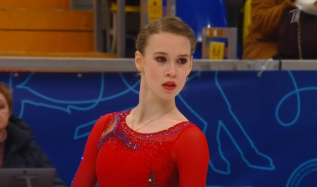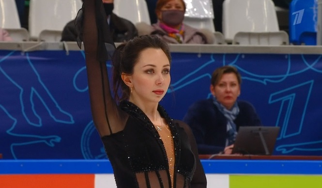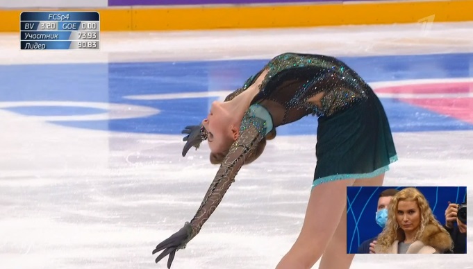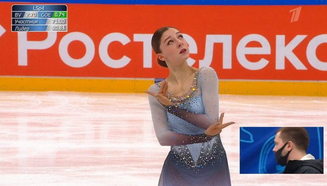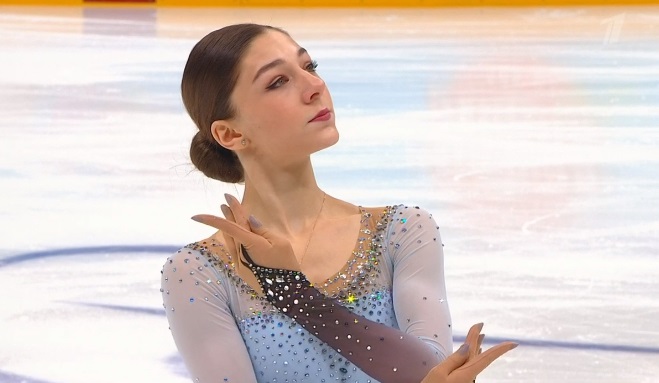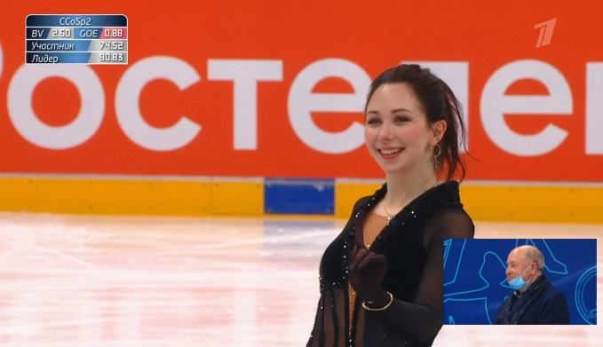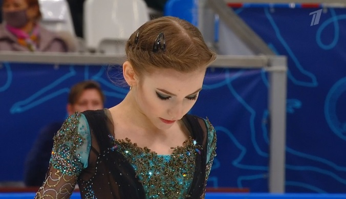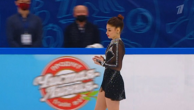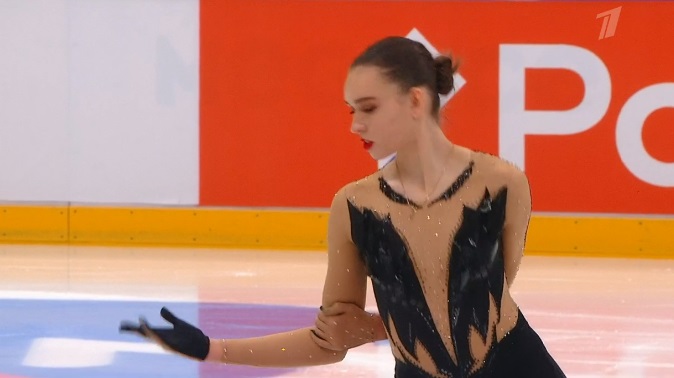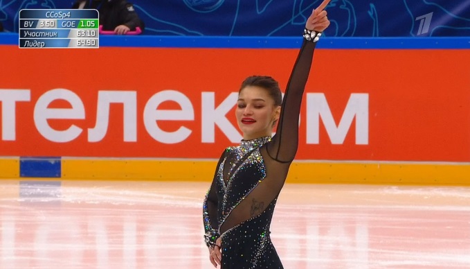 Начала с двойного флипа, затем выполнила каскад 2 аксель + ойлер + 3 сальхова, дальше очень высокий тройной риттбергер, потом двойной аксель завершил первую часть выступления. Во второй были каскад 3 лутц + 2 тулуп, сольный тройной лутц, каскад 3 флип + 2 тулуп, дорожка шагов второго уровня и разнообразные вращения на четвертый. Справилась со своим контентом ученица Алексея Мишина.