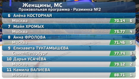 150,59 за свой шикарный прокат зарабатывает Усачева. Второе место, не смогла только Хромых обойти.