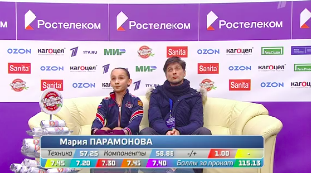 А теперь время выступать Марии Парамоновой из ЦСКА! Девушка стала известна по своим успехам в шоу «Ледниковый период. Дети».