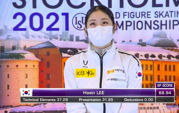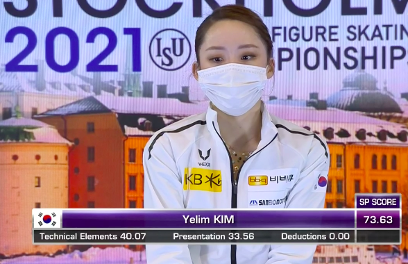 За свой прокат Ким Йелим (Южная Корея) получает 73,63 балла и занимает промежуточное третье место. Вот это дебют на чемпионате мира! Браво 18-летней спортсменке.