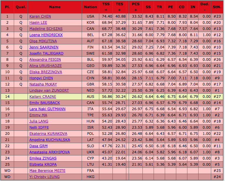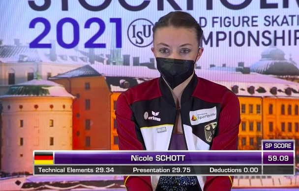За свой прокат Николь Шотт (Германия) набирает 59,09 балла и пробивается в произвольную программу!