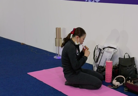 На утреннем прогоне короткой программы Каори показала двойной аксель, тройной лутц и каскад тройной флип + тройной тулуп.
