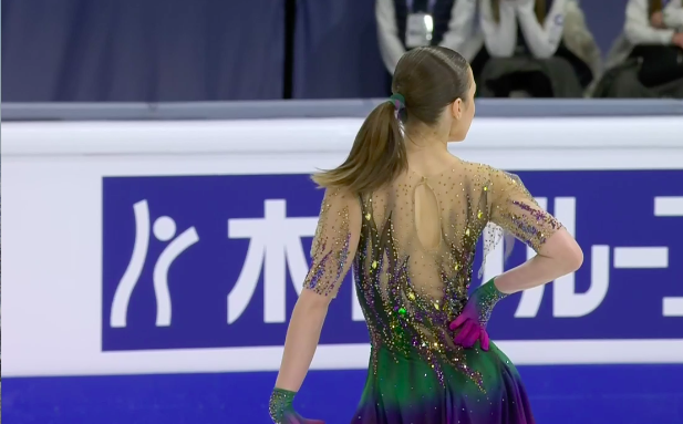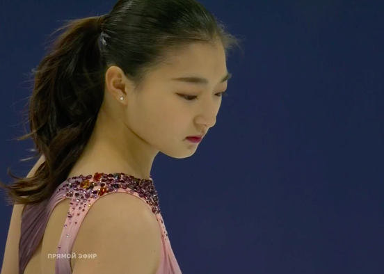 Лишь двойной риттбергер делает Паганини в концовке выступления вместо тройного! Очень разволновалась спортсменка. К счастью, хотя бы двойной аксель получился без ошибок.
