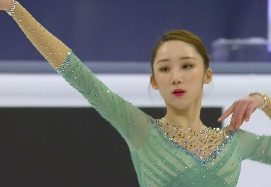 Двойной аксель и финальный тройной флип Ким Йелим показывает так же изящно и словно без усилий. Хрупкая и элегантная фигуристка в нежно-изумрудном платье будто несется по звукам клавишных и воспаряет все выше и выше. Очень вдохновенная программа.