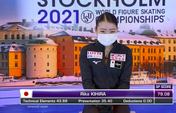 На втором месте — японка Рика Кихира, которая исполнила тройной аксель, но допустила два недокрута, которые не позволили ей обогнать россиянку. Оценка Кихиры — 79,08.