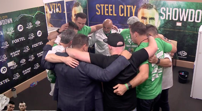 Деннис Хоган сразу же поздравляет соперника, едва придя в себя после финального избиения. Сколько неприятных слов было сказано австралийцем ирландского происхождения перед этим поединком, но теперь он демонстрирует только уважение.