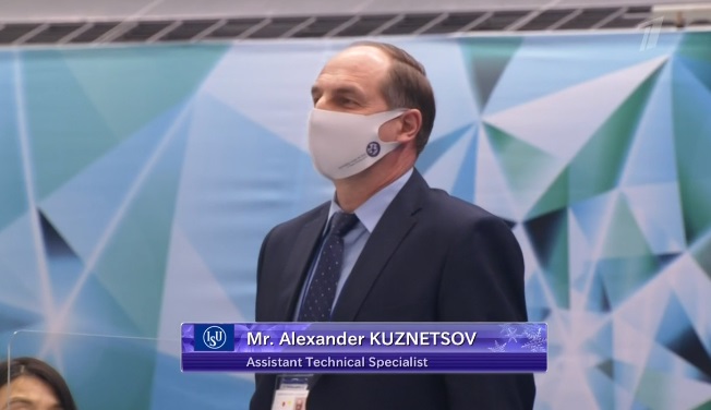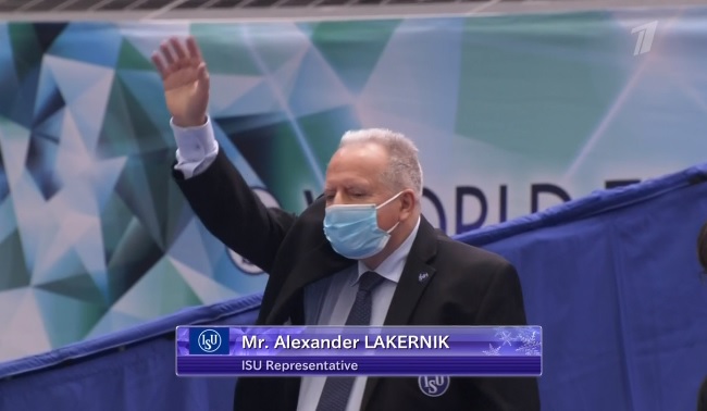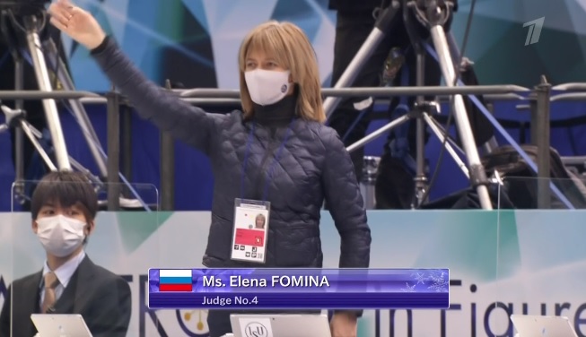 Сейчас идет представление арбитров, которые будут работать на женской короткой программе. Александр Лакерник — представитель ИСУ. Елена Фомина снова работает.