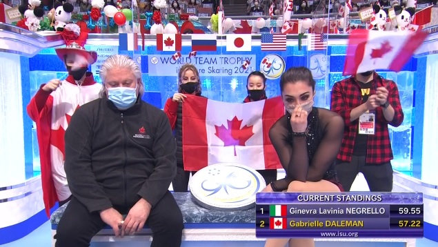 Итак, выступили итальянка и канадка Габриэль Дейлман. У известной североамериканской фигуристки не все получилось. Например, она сделала лутц только в два оборота, и он вообще не был засчитан. После ухода от Брайана Орсера не показывает таких результатов, как раньше, канадка. В итоге проиграла даже Негрелло.
