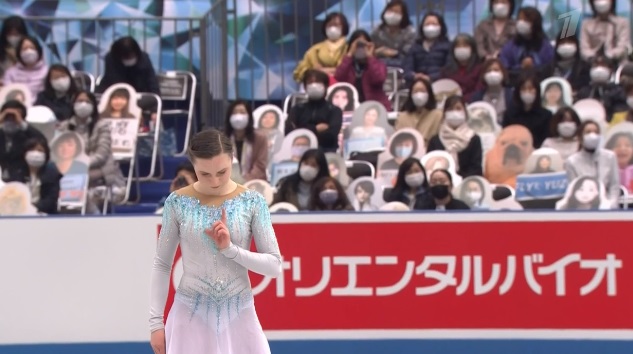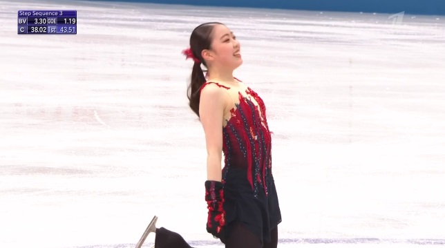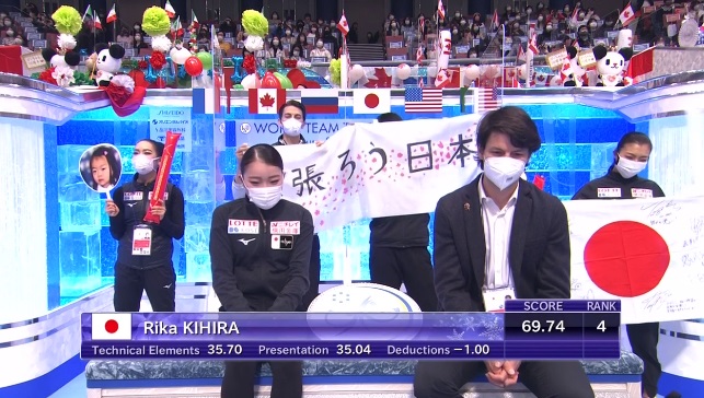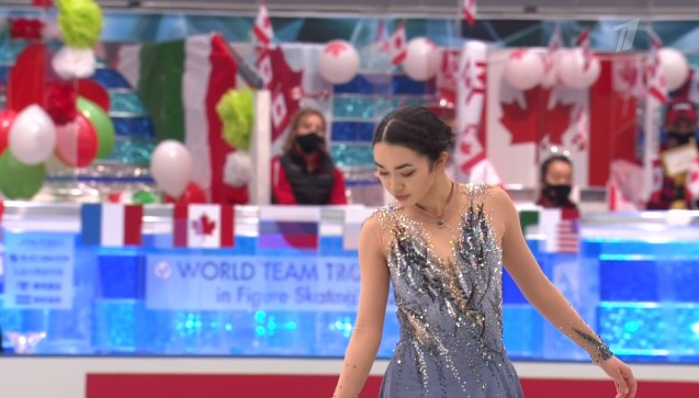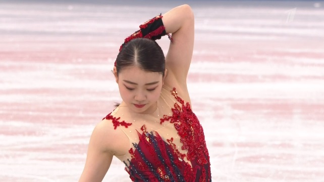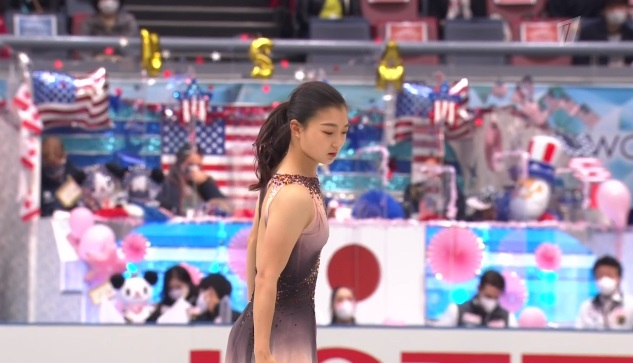 Рика Кихира завершает короткую программу женщин. Естественно, она попытается победить россиянок. Будет ли тройной аксель?
