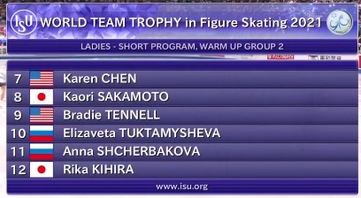 А сейчас начинается вторая разминка, в которой выступят наши Елизавета Туктамышева и Анна Щербакова! Они выйдут на лед четвертой и пятой, а закроет соревнования их главная конкурентка Рика Кихира из Японии.