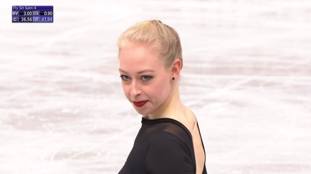Шумахер откатала очень прилично, без видимых ошибок. По технике она тоже получила лучшую оценку среди всех, уже выступивших. Правда, пару недокрутов арбитры увидели, ну и выезд с риттбергера был не самым удачным. В итоге канадка показывает на данный момент второй результат. Выступившая первой Негрелло остается лидером.