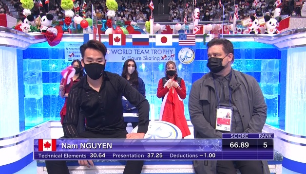 Сразу же падение с четверного сальхова. Затем чисто выполненный тройной аксель. Вряд ли Нгуен остался доволен каскадом 3 флип + 2 тулуп. Второй прыжок, безусловно, должен был быть более оборотным. Не все вращения смог сделать на четвертый уровень, за дорожку получил вообще только второй. Не лучший сезон в карьере Нгуена.