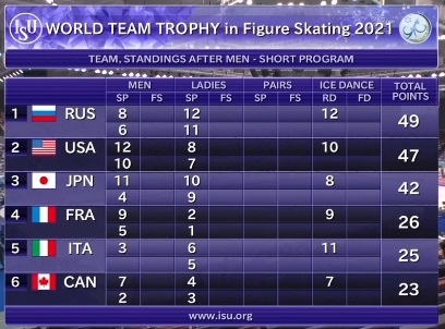 Вот таким получился первый день на Командном чемпионате мира в Японии. Российская сборная выиграла ритм-танец и женскую короткую программу, уступив в короткой программе у мужчин. Все в целом ожидаемо, и все российские фигуристы откатали хорошо. Благодаря этому наша команда лидирует. На этом будем завершать нашу трансляцию, ее для вас вел Александр Седов.