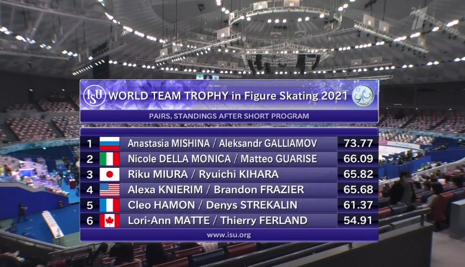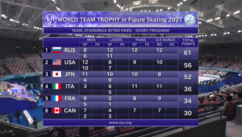 Положение сводной таблицы по итогам танцев на льду. Россия еще больше оторвалась от США и Японии.