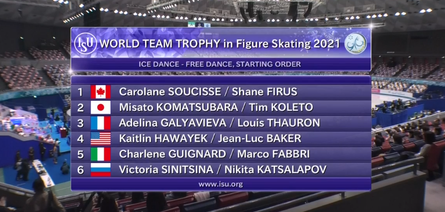 Первая разминка без сенсаций. Французы Аделина Галявиева / Луи Торон вышли в промежуточные лидеры, а две одиночницы в kiss and cry на радостях даже устроили канкан. Японская супружеская пара Мисато Комацубара / Тим Колето, которая уже отобралась на Олимпиаду, выгрызла преимущество над канадцами Кэролайн Сусис / Шейн Фирус. Они не лучшим образом выступили в произвольной, как и в короткой, и пока замыкают таблицу. Вот, пожалуй, пока главная сенсация танцевальной дисциплины.