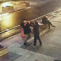 Когда Шараев проходил мимо своей будущей жертвы — молодого человека в пальто, — тот высказал ему что-то вслед. Спортсмен тут же развернулся и оттолкнул от себя прохожего, перед этим угрожающе столкнувшись с ним лбами и что-то заявив в ответ.