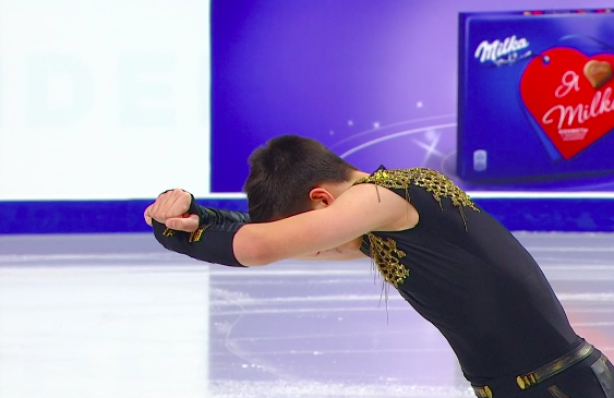 Ученик Алексея Мишина блестяще справляется со всеми прыжками, включая четверные в каскаде с тройными. После каждого успешного элемента Семененко торжествующе вздымает руки — выглядит это демонически. Зрители визжат от восторга.