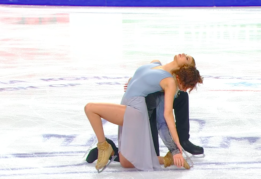 Предыдущая композиция сменилась на более тревожную Chronos Кирилла Рихтера — беспокойная скрипка и клавишные неслись вперед, обгоняя друг друга, а фигуристы в это время показали несколько очень сложных поддержек. Публика то и дело заходилась в аплодисментах.