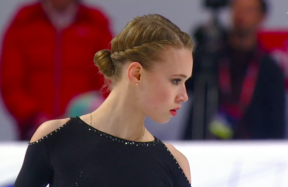 Начальная серия каскадов Софье удалась — тройной флип + тройной тулуп и двойной аксель + ойлер + тройной сальхов исполнены без грубых ошибок, хотя и не такой маленькой высоте, что выглядело опасно.