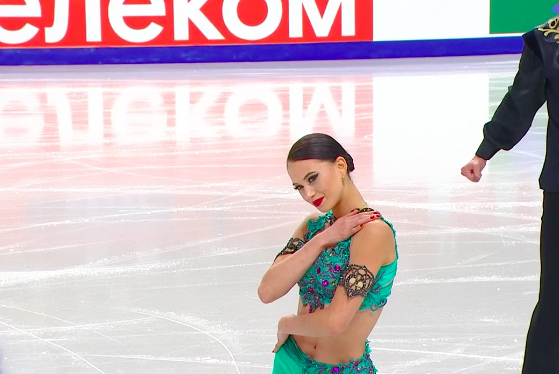 Из-за падений и некрасивых выездов с потерей равновесия торжественная и давящая своим пафосом «Болеро» совсем не смотрится. Здесь в плане презентации либо все, либо ничего. Сама Камила с виноватой улыбкой схватилась за голову после проката. Не надо отчаиваться! Все еще впереди.
