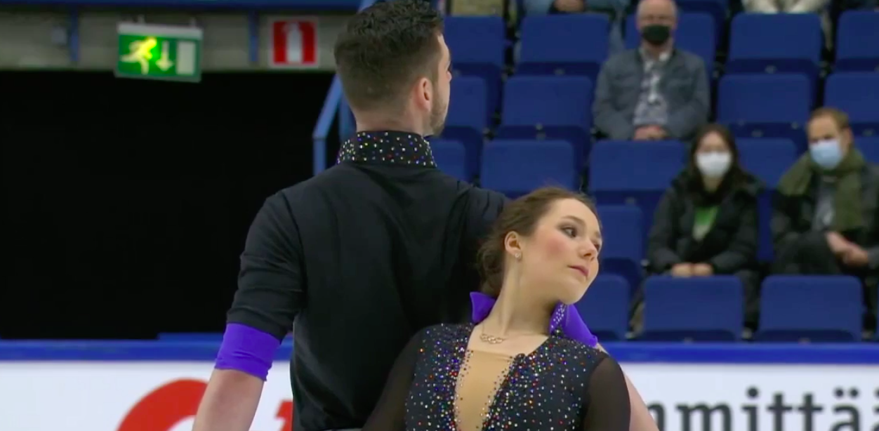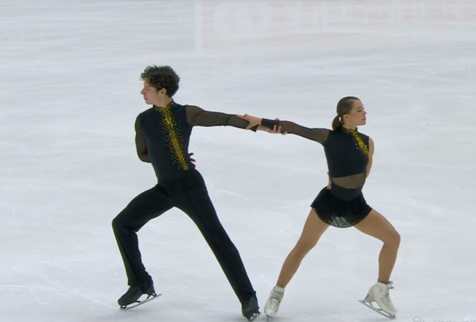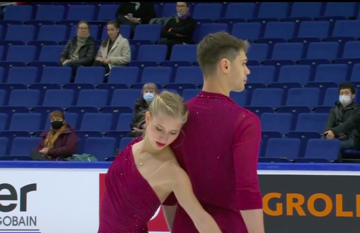 Следующими выступают Ника Осипова и Дмитрий Эпштейн из Нидерландов. Они катаются под джазовую обработку Seven Nation Army, которую в прошлом сезоне использовала для своей короткой программы Софья Акатьева.
