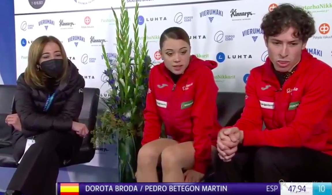 Завершают сегодняшние прокаты испанцы Дорота Брода и Педро Бетегон Мартин. Они катаются под Bang Bang (L'Arena by 2Cellos ft. Sky Ferreira, Ennio Morricone).