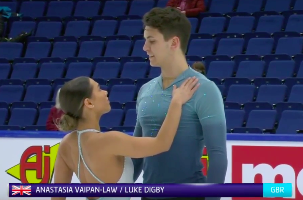 Следующими выступают Анастасия Вейпан-Лоу и Люк Дигби из Великобритании. Они катаются под саундтрек к фильму «Привидение».