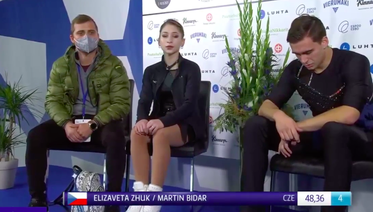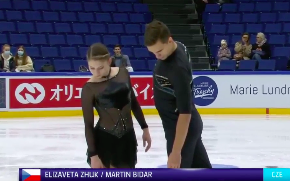 Следующими выступают Елизавета Жук и Мартин Бидар из Чехии. Они катаются под композицию Boom Boom (2WEI, Jon, Bri Bryant).