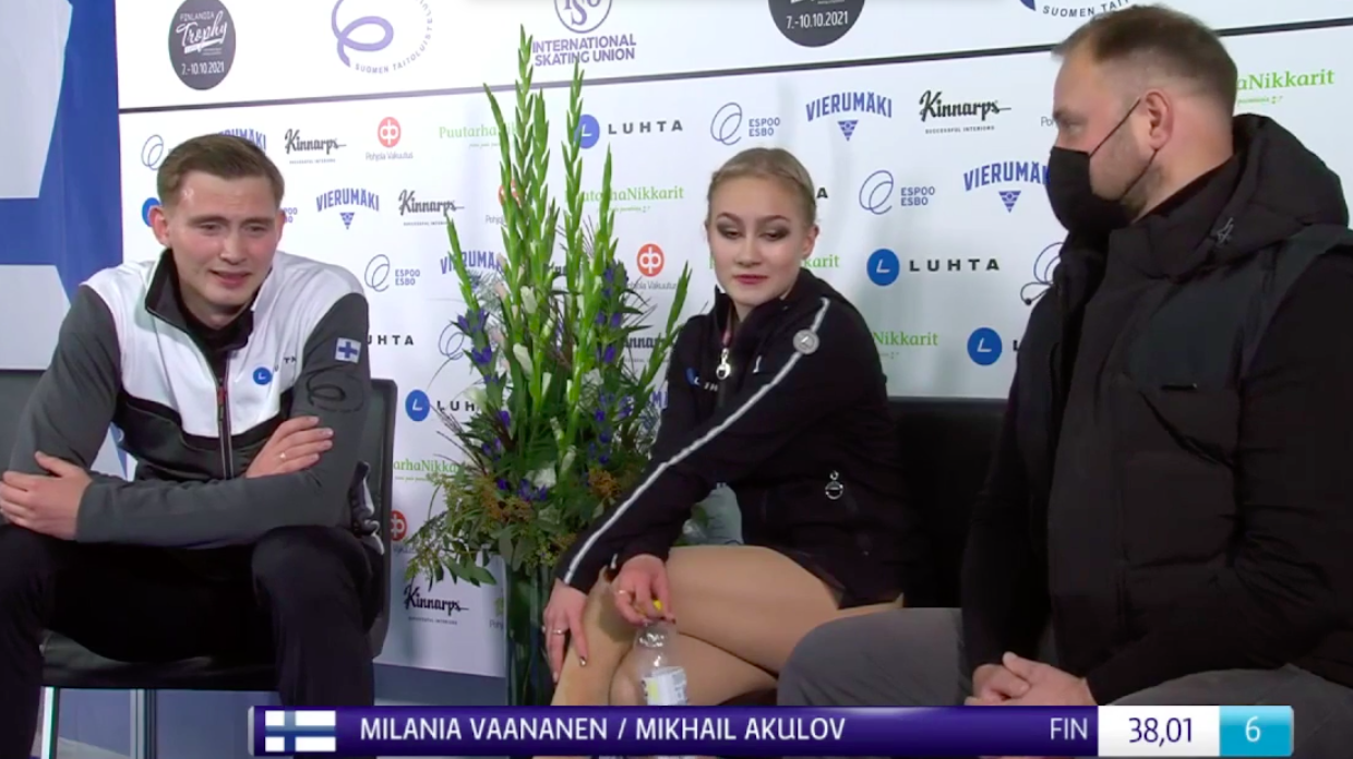 Оценка финнов Ваанен и Акулова за короткую программу — 38,01 балла. Во время ожидания фигуристы мило передавали «всем привет» по-русски.