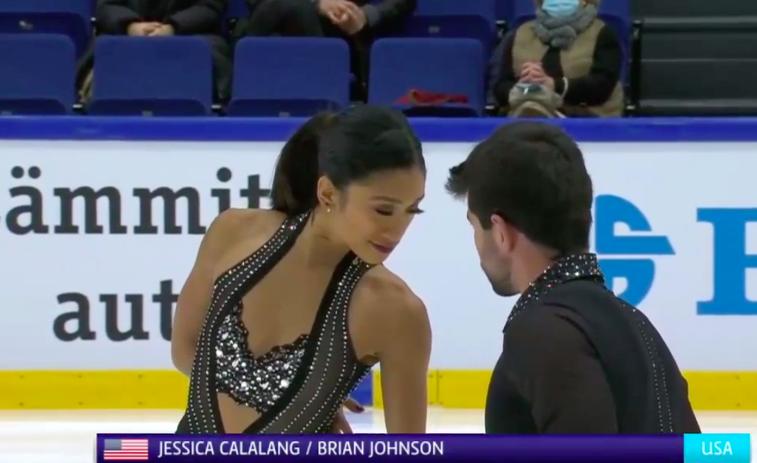 Следующими выступают Джессика Галаланг и Брайан Джонсон из США. Они катаются под зажигательную Come Together (Junkie XL & Gary Clark Jr).
