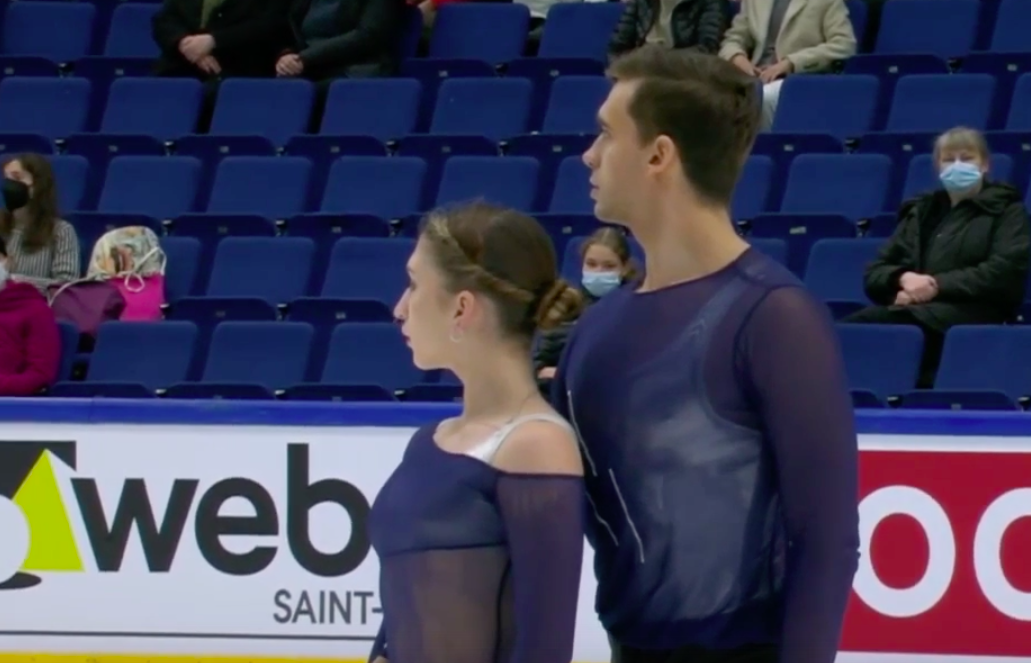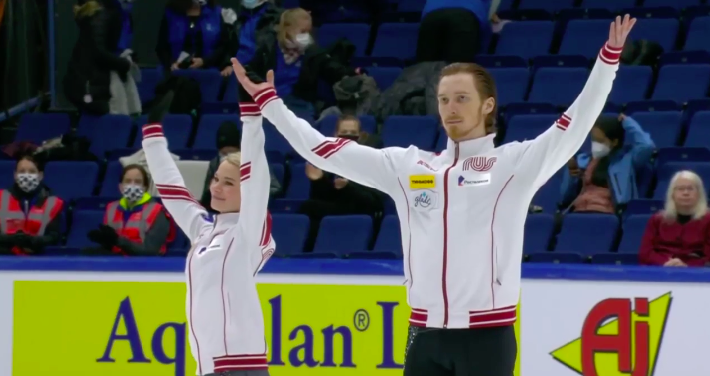 2) Действующие чемпионы мира из России Анастасия Мишина и Александр Галлямов оказались на втором месте (73,76 балла). Большую роль в этом сыграло падение Мишиной с параллельного тройного сальхова.