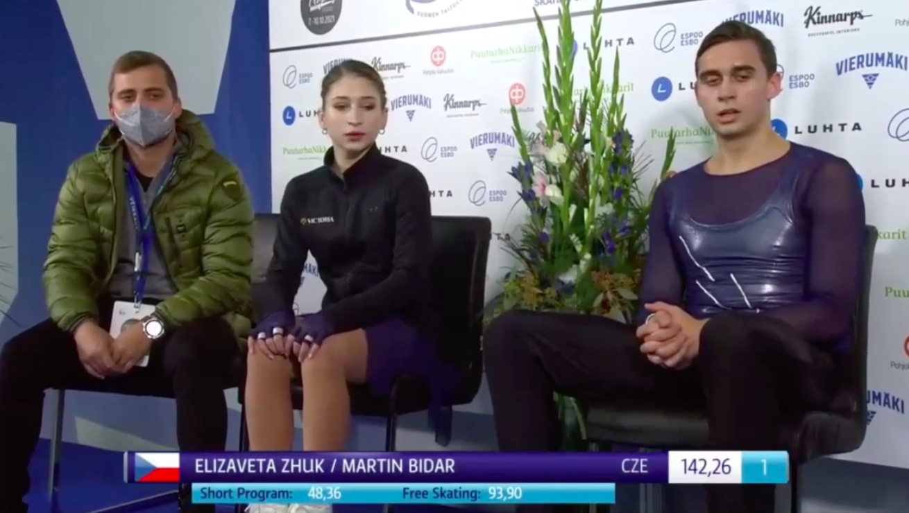 Оценка чехов Жук и Бидара за произвольную программу — 93,90 балла, а по сумме — 142,26. Это промежуточное первое место. Впрочем, совсем скоро их подвинут.