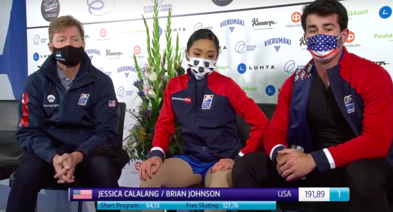 Оценка американцев Галаланг и Джонсона за произвольную программу — 127,76 балла, а по сумме — 191,89.