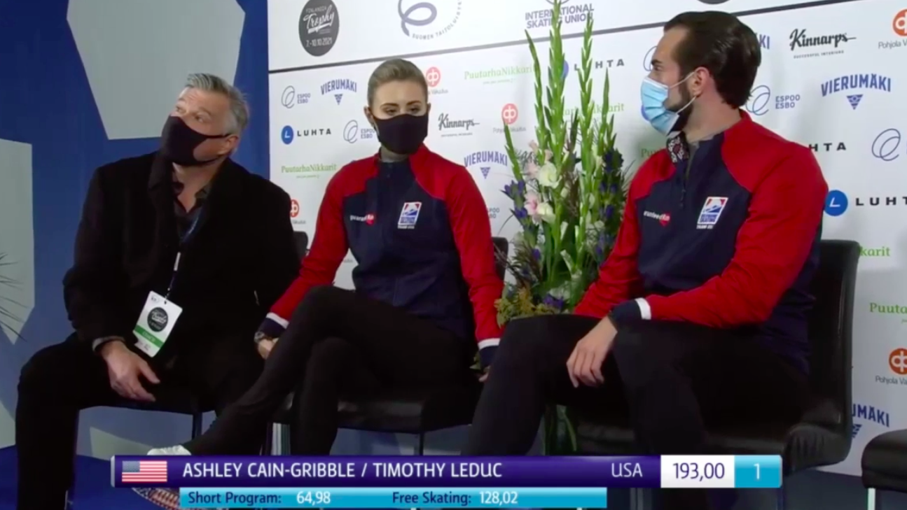 Оценка американцев Кейн-Гриббл и Ледука за произвольную программу — 128,02 балла, а по сумме — 193,00.