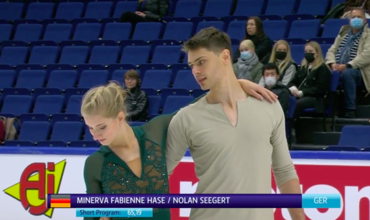 Следующими выступают Минерва Хаазе и Нолан Зегерт из Германии. Они катаются под People Help The People (Bird).