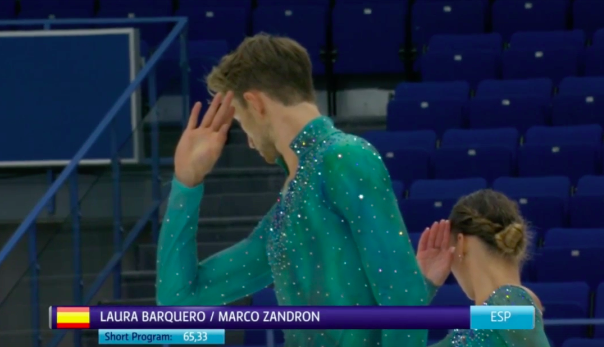 Испанцы отлично исполнили каскад тройной сальхов + двойной риттбергер, а затем продемонстрировали впечатляющий тройной выброс.