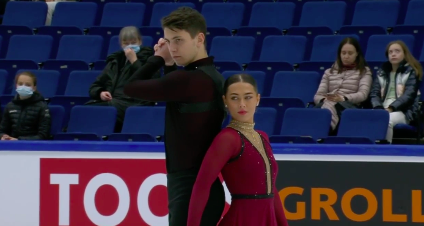 Следующими выступают Богдана Лукашевич и Александр Степанов из Белоруссии. Они катаются под саундтрек к фильму «Пираты Карибского моря».