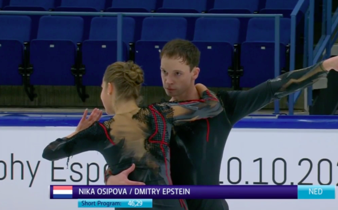 Выступают Ника Осипова и Дмитрий Эпштейн из Нидерландов. Они катаются под пафосный инструментал Prelude, Age Of Heroes (Havasi).