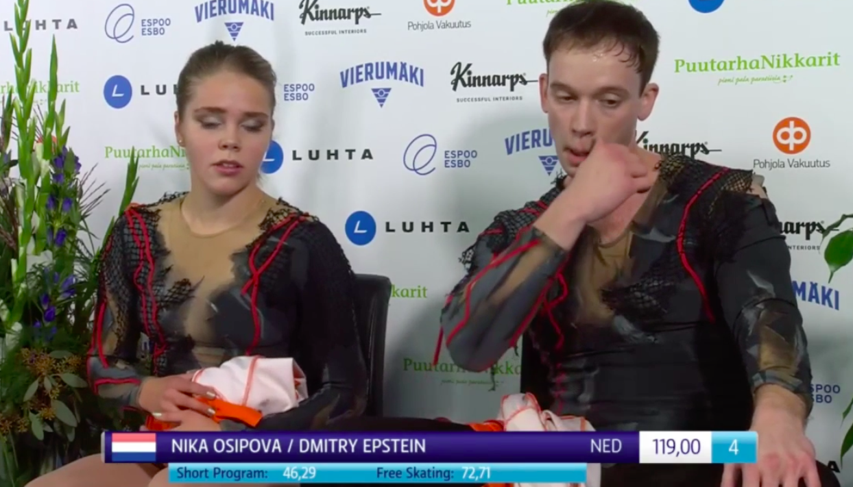 Оценка нидерландцев Осиповой и Эпштейна за произвольную программу — 72,71 балла, а по сумме — 119,00.