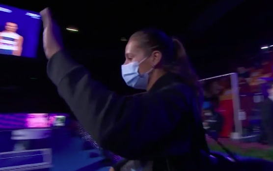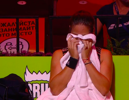 Украинка в кои-то веки ошиблась, отбив в аут. Российская публика аплодирует, пытаясь взбодрить Касаткину. 15:30.