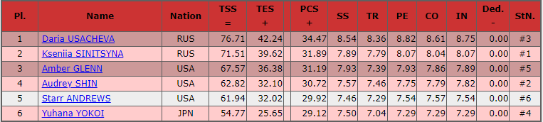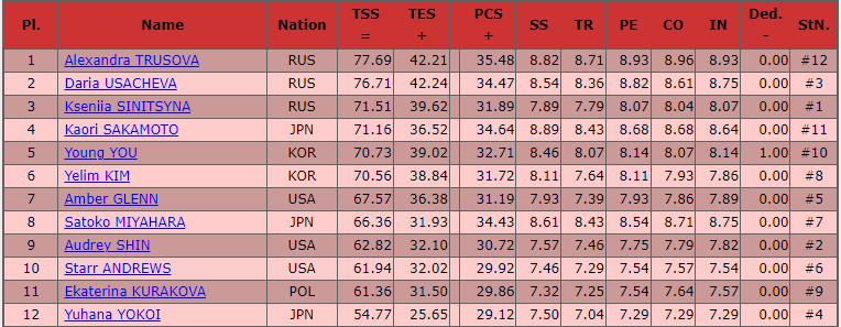 76,71! Просто космические оценки для первого взрослого международного старта! И Усачева становится лидером!
