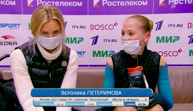 Оценка Петеримовой за короткую программу — 65,94 балла. Ого-го, вот это результат! Третье промежуточное место.