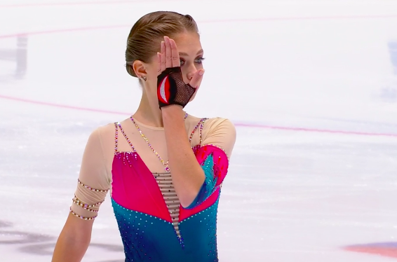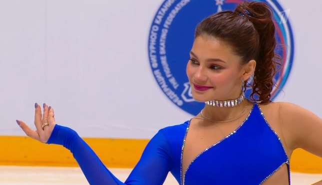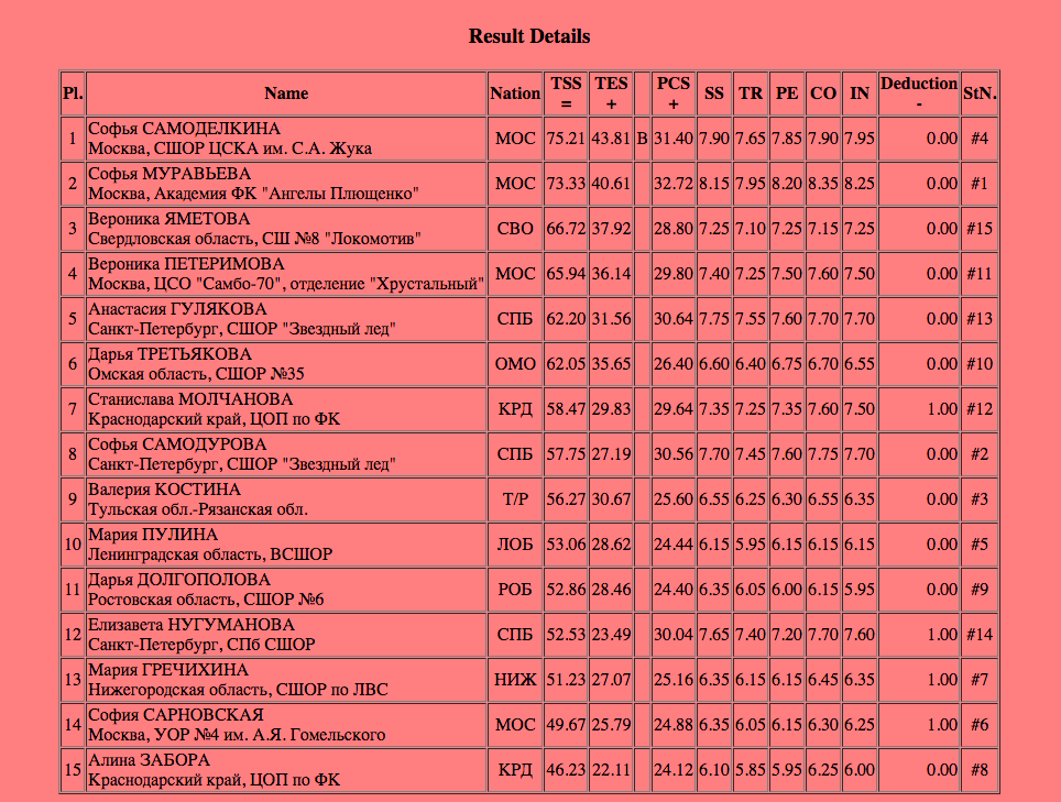 Оценка Самоделкиной за короткую программу — 75,21 балла. Это первое место на данный момент.