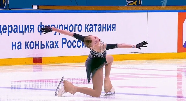 В концовке Долгополова справилась с тройным флипом. Девушка показала довольно уверенное выступление, без дрожи в ногах. Правда, дорожку шагов судьи оценили только на второй уровень. Ну и еще из недочетов: Дарья не успела закончить в музыкальный акцент и финальный пафосный взмах руками делала уже в полной тишине, чем явно была недовольна. Ну, бывает.