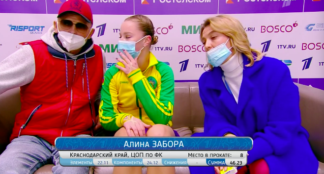 Финальный двойной аксель Забора сделала, но это уже слабо утешает. Фигуристка так расклеилась в конце выступления, что откатала дорожку шагов на самый базовый, первый уровень. Жаль.