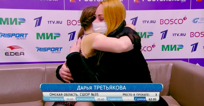 Оценка Третьяковой за короткую программу — 62,05 балла. Заслуженно высокая оценка для этой потрясающей фигуристки! Она занимает промежуточное третье место, уступая только Самоделкиной, исполнившей тройной аксель, и ученице Плющенко — Муравьевой, которая пробилась в финал юниорского Гран-при этого сезона. Очень достойно.